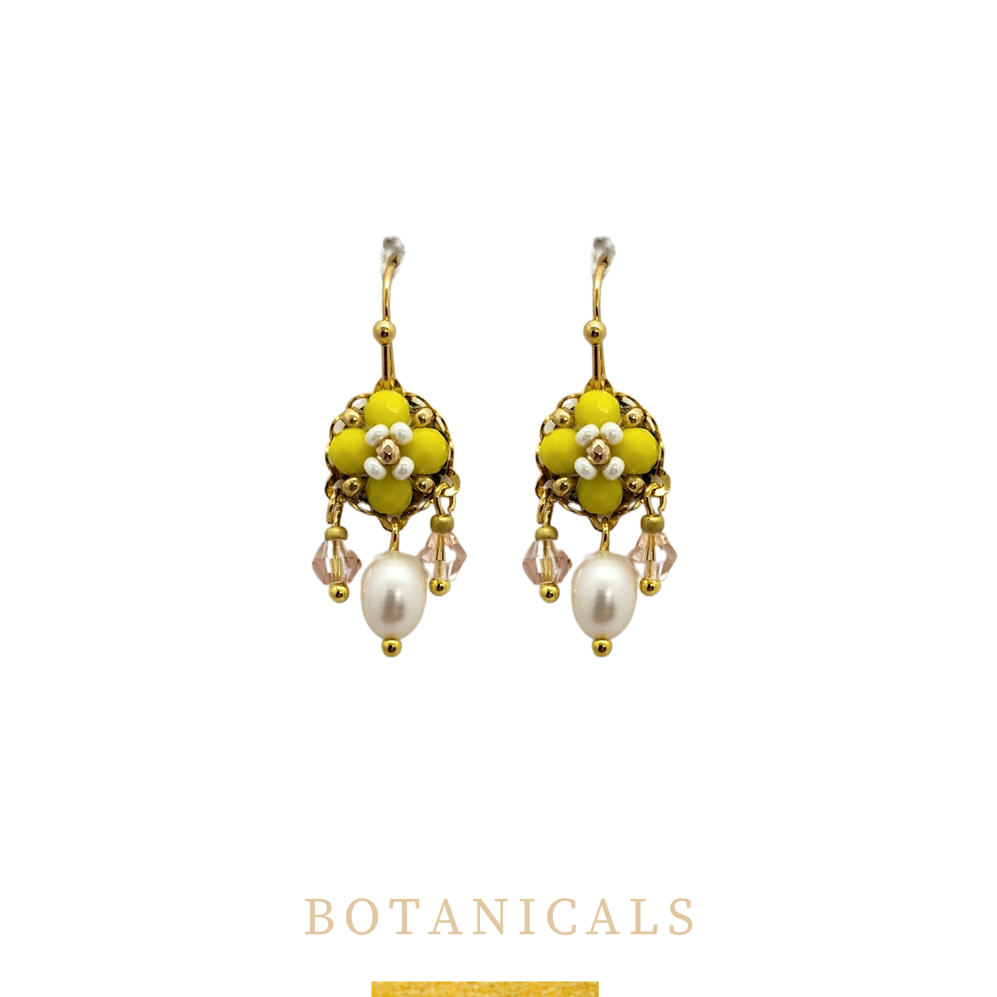 Elegant and delicate, our fleurette chandelier earring cascades with fresh water pearl and glass bead charms. Easy to style for day wear or night time glamour.