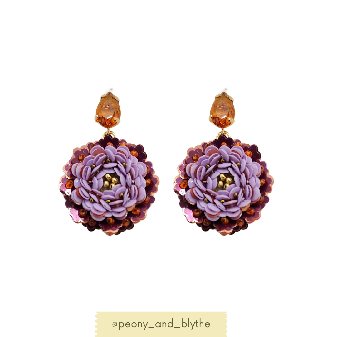 Bold marigold cluster with delicate, lace like edges and a shimmering amber, glass gem. Lightweight and elegant, they effortlessly enhance any look, making them the perfect accessory.