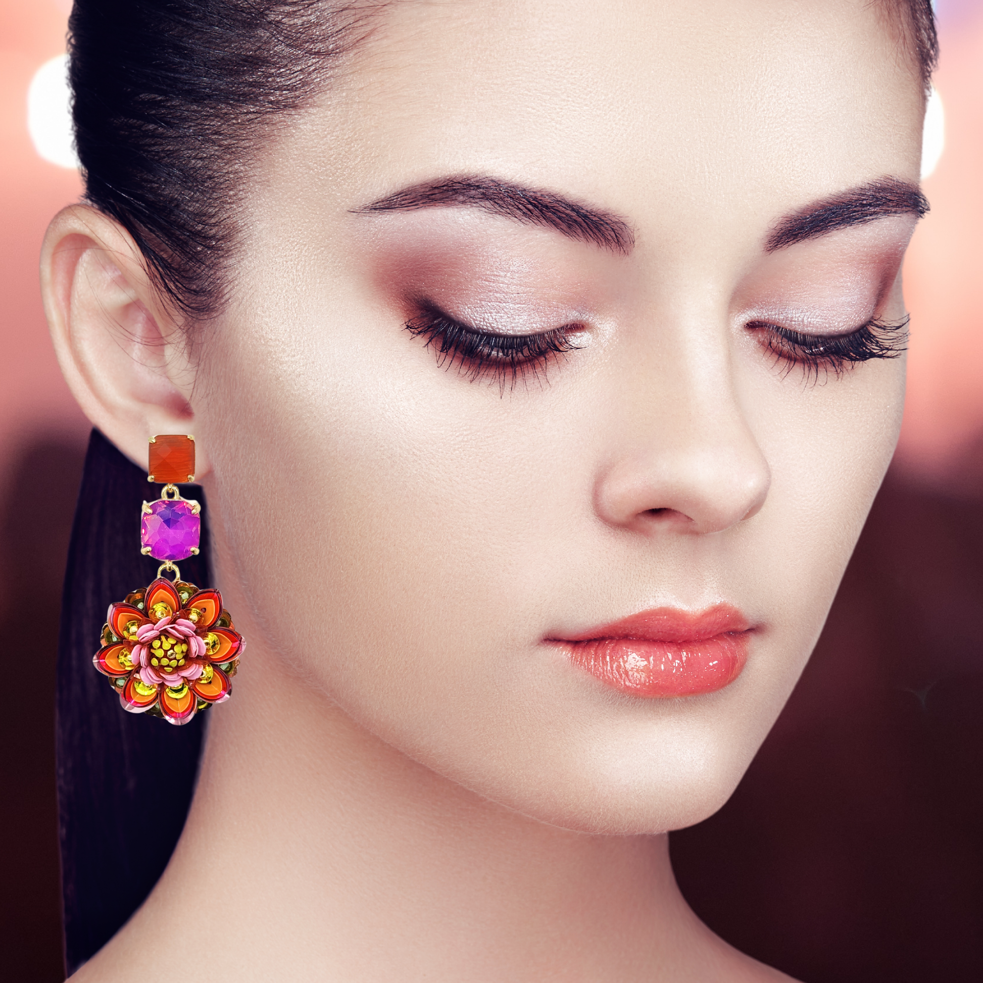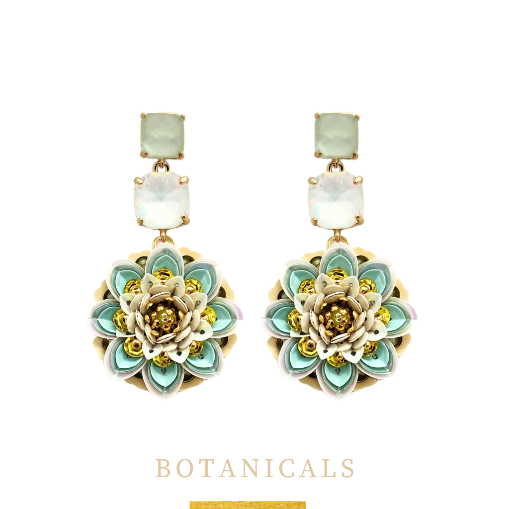 A single flower with layers of petals, offsets a floret with beaded centre.
