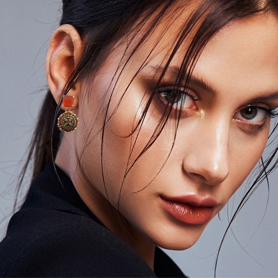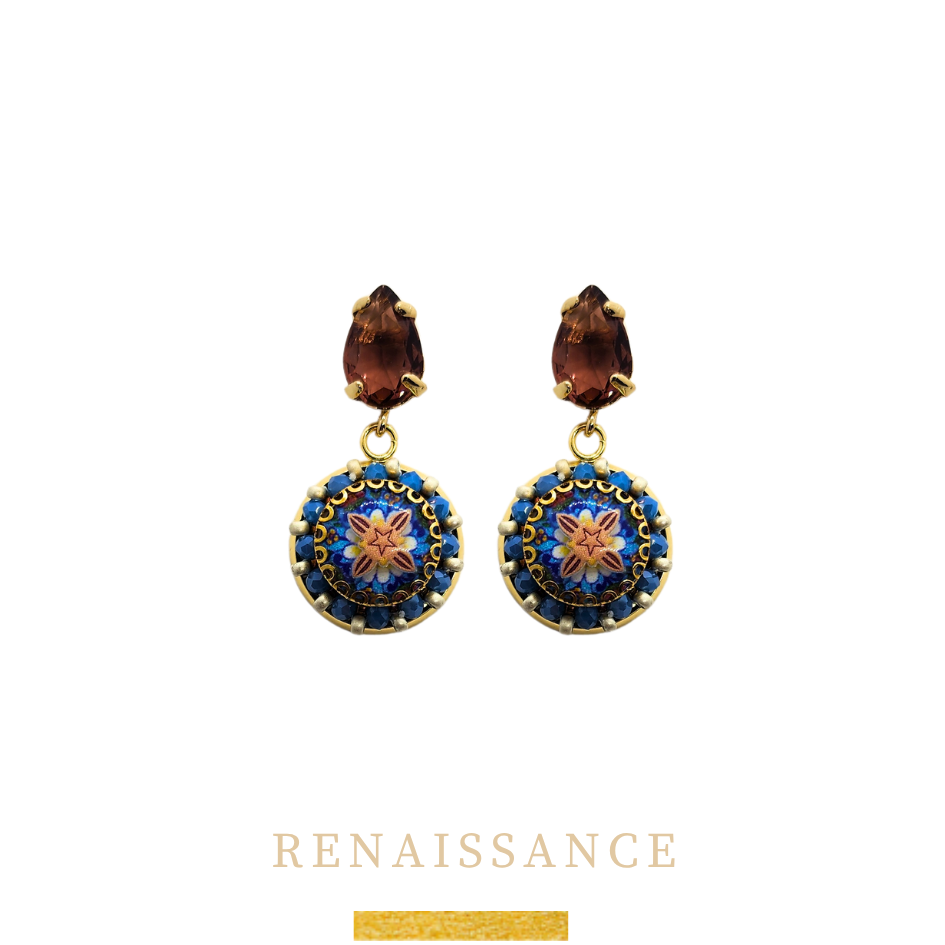 Beaded bezel with small mosaic pieces, these are elegant, classic and inspired by the rich hues and patterns of the Renaissance.